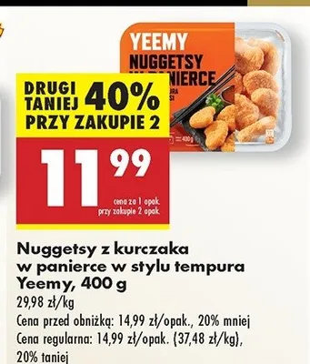 Cena produktu r贸偶ni si臋 w zale偶no艣ci od wybranego sklepu. Niestety nie posiadamy danych o aktualnych promocjach, jednak w艣r贸d archiwalnych ofert Nuggetsy w panierce Yeemy kosztuje od 9,99 z艂 do 11,99 z艂.