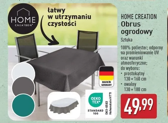 Przegl膮daj podobne oferty promocyjne do Obrus ogrodowy owalny 130 x 80 cm Home creation!