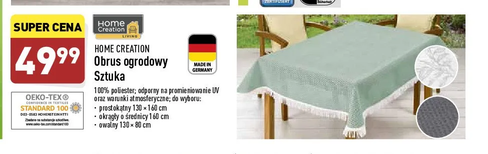 Przegl膮daj podobne oferty promocyjne do Obrus ogrodowy rustykalny okr膮g艂y 160 cm Home creation!