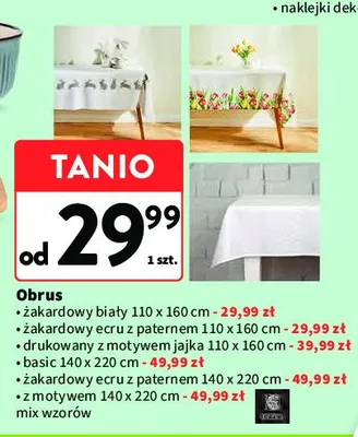 Cena produktu r贸偶ni si臋 w zale偶no艣ci od wybranego sklepu. Produkt Obrus 偶akardowy ecru z paternem 110 x 160 cm Essex mo偶esz kupi膰 w promocji ju偶 od 39,99 z艂. Najta艅sza oferta, jak膮 mamy w naszej bazie jest z sieci POLOmarket. Obrus 偶akardowy ecru z paternem 110 x 160 cm Essex kosztuje aktualnie 39,99 z艂. Zobacz ofert臋