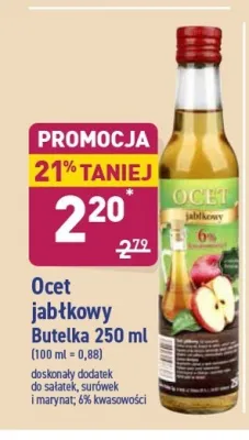 Cena produktu r贸偶ni si臋 w zale偶no艣ci od wybranego sklepu. Niestety nie posiadamy danych o aktualnych promocjach, jednak w艣r贸d archiwalnych ofert Ocet jab艂kowy kosztuje od 2,2 z艂.
