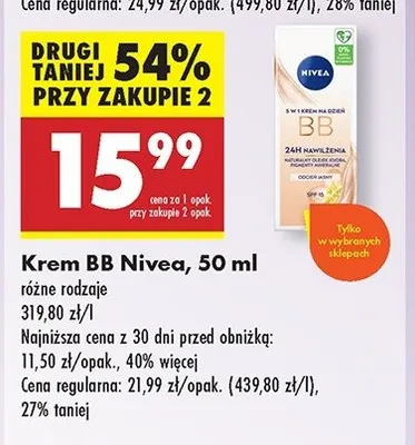 Cena produktu r贸偶ni si臋 w zale偶no艣ci od wybranego sklepu. Niestety nie posiadamy danych o aktualnych promocjach, jednak w艣r贸d archiwalnych ofert Ochronny krem do twarzy bb spf 50+ Nivea sun uv face kosztuje od 15,99 z艂 do 24,49 z艂.