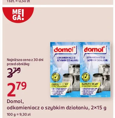 Cena produktu r贸偶ni si臋 w zale偶no艣ci od wybranego sklepu. Niestety nie posiadamy danych o aktualnych promocjach, jednak w艣r贸d archiwalnych ofert Odkamieniacz Domol kosztuje od 1,99 z艂 do 2,79 z艂.