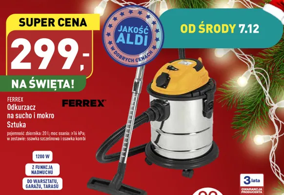 Cena produktu r贸偶ni si臋 w zale偶no艣ci od wybranego sklepu. Niestety nie posiadamy danych o aktualnych promocjach, jednak w艣r贸d archiwalnych ofert Odkurzacz do pracy na sucho i mokro 1200 w 20 l Ferrex kosztuje od 299 z艂.