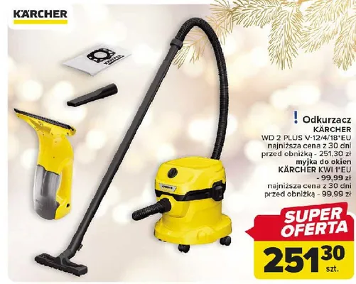 Cena produktu r贸偶ni si臋 w zale偶no艣ci od wybranego sklepu. Niestety nie posiadamy danych o aktualnych promocjach, jednak w艣r贸d archiwalnych ofert Odkurzacz wd 2 plus 1.628-009.0 Karcher kosztuje od 251,3 z艂.