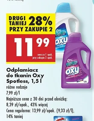 Zastanawiasz si臋, gdzie kupi膰 i ile kosztuje produkt Odplamiacz color Oxy spotless? Regularnie sprawdzamy, czy jest promocja na ten produkt w Biedronka, Lidl, Kaufland, Auchan, Netto, Makro i innych sklepach. Aktualnie posiadamy 1 ofert臋 promocyjn膮 na ten produkt. Ceny zaczynaj膮 si臋 od 16,79z艂!