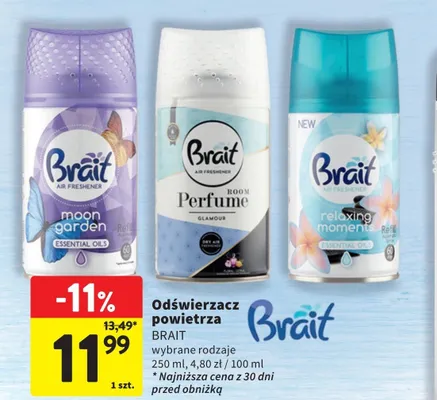 Cena produktu różni się w zależności od wybranego sklepu. Niestety nie posiadamy danych o aktualnych promocjach, jednak wśród archiwalnych ofert Odświeżacz moon garden Brait 3 in 1 air care kosztuje od 8,99 zł do 11,99 zł.