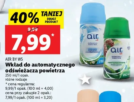 Cena produktu różni się w zależności od wybranego sklepu. Niestety nie posiadamy danych o aktualnych promocjach, jednak wśród archiwalnych ofert Odświeżacz powietrza czyste pranie powiewające na wietrze AIR BY W5 kosztuje od 7,99 zł.