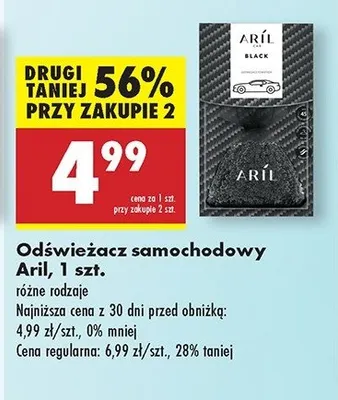 Cena produktu różni się w zależności od wybranego sklepu. Niestety nie posiadamy danych o aktualnych promocjach, jednak wśród archiwalnych ofert Odświeżacz samochodowy black woreczek Aril kosztuje od 3,99 zł do 4,99 zł.