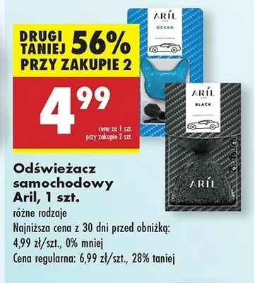Cena produktu różni się w zależności od wybranego sklepu. Niestety nie posiadamy danych o aktualnych promocjach, jednak wśród archiwalnych ofert Odświeżacz samochodowy ocean Aril car kosztuje od 4,66 zł do 4,99 zł.