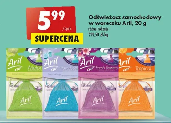 Cena produktu różni się w zależności od wybranego sklepu. Niestety nie posiadamy danych o aktualnych promocjach, jednak wśród archiwalnych ofert Odświeżacz woreczek tropical Aril car kosztuje od 4,99 zł do 5,99 zł.
