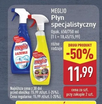 Cena produktu r贸偶ni si臋 w zale偶no艣ci od wybranego sklepu. Produkt Odt艂uszczacz w sprayu Meglio mo偶esz kupi膰 w promocji ju偶 od 11,99 z艂 do 12,99 z艂. Najta艅sza oferta, jak膮 mamy w naszej bazie jest z sieci Kaufland. Odt艂uszczacz w sprayu Meglio kosztuje aktualnie 11,99 z艂. Zobacz ofert臋