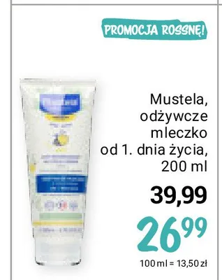 Cena produktu różni się w zależności od wybranego sklepu. Niestety nie posiadamy danych o aktualnych promocjach, jednak wśród archiwalnych ofert Odżywcze mleczko od 1 dnia życia Mustela kosztuje od 26,99 zł do 29,99 zł.
