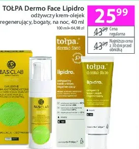 Cena produktu różni się w zależności od wybranego sklepu. Niestety nie posiadamy danych o aktualnych promocjach, jednak wśród archiwalnych ofert Odżywczy krem regenerujący Tołpa: dermo face, lipidro kosztuje od 25,99 zł do 29,99 zł.