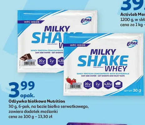 Zastanawiasz się, gdzie kupić i ile kosztuje produkt Odżywka białkowa milky shake biała czekolada 6pak? Regularnie sprawdzamy, czy jest promocja na ten produkt w Biedronka, Lidl, Kaufland, Auchan, Netto, Makro i innych sklepach. Aktualnie nie posiadamy ofert promocyjnych na ten produkt.