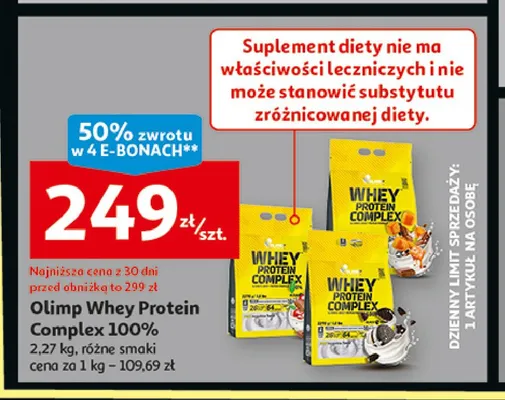 Cena produktu różni się w zależności od wybranego sklepu. Niestety nie posiadamy danych o aktualnych promocjach, jednak wśród archiwalnych ofert Odżywka białkowa słony karmel Olimp sport nutrition whey protein complex 100% kosztuje od 3,99 zł do 124,5 zł.