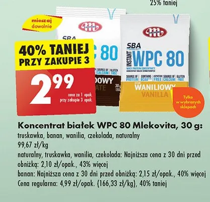 Cena produktu różni się w zależności od wybranego sklepu. Niestety nie posiadamy danych o aktualnych promocjach, jednak wśród archiwalnych ofert Odżywka białkowa super body active wpc 80 natural Mlekovita kosztuje od 2,99 zł.