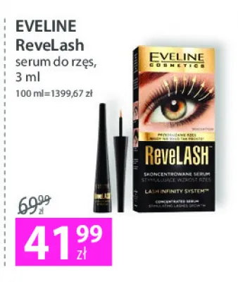 Cena produktu różni się w zależności od wybranego sklepu. Niestety nie posiadamy danych o aktualnych promocjach, jednak wśród archiwalnych ofert Odżywka do rzęs Eveline revelash kosztuje od 41,99 zł.