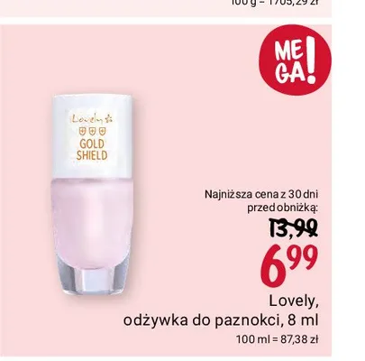 Cena produktu różni się w zależności od wybranego sklepu. Niestety nie posiadamy danych o aktualnych promocjach, jednak wśród archiwalnych ofert Odżywka do słabych i rozdwojonych paznokci kosztuje od 4,99 zł do 6,99 zł.