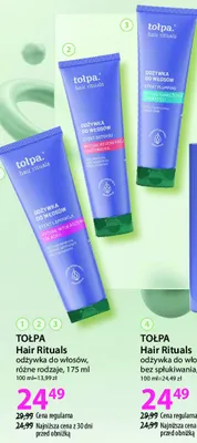 Cena produktu różni się w zależności od wybranego sklepu. Niestety nie posiadamy danych o aktualnych promocjach, jednak wśród archiwalnych ofert Odżywka do włosów efekt plumingu Tołpa hair rituals kosztuje od 24,49 zł do 24,99 zł.