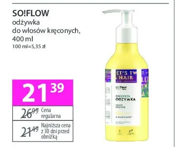 Cena produktu różni się w zależności od wybranego sklepu. Niestety nie posiadamy danych o aktualnych promocjach, jednak wśród archiwalnych ofert Odżywka do włosów kręconych So!flow Vis plantis kosztuje od 15,49 zł do 21,39 zł.