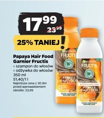 Zastanawiasz si臋, gdzie kupi膰 i ile kosztuje produkt Od偶ywka do w艂os贸w papaya Garnier fructis hair food? Regularnie sprawdzamy, czy jest promocja na ten produkt w Biedronka, Lidl, Kaufland, Auchan, Netto, Makro i innych sklepach. Aktualnie posiadamy 2 oferty promocyjne na ten produkt. Ceny zaczynaj膮 si臋 od 14,99z艂!