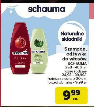 Cena produktu różni się w zależności od wybranego sklepu. Produkt Odżywka do włosów ziołowa Schauma 7 herbs możesz kupić w promocji już od 14,99 zł. Najtańsza oferta, jaką mamy w naszej bazie jest z sieci Biedronka. Odżywka do włosów ziołowa Schauma 7 herbs kosztuje aktualnie 14,99 zł. Zobacz ofertę