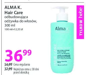 Cena produktu różni się w zależności od wybranego sklepu. Niestety nie posiadamy danych o aktualnych promocjach, jednak wśród archiwalnych ofert Odżywka odbudowująca ALMA K. kosztuje od 36,99 zł do 39,99 zł.