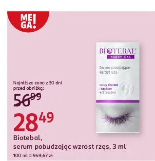 Cena produktu różni się w zależności od wybranego sklepu. Niestety nie posiadamy danych o aktualnych promocjach, jednak wśród archiwalnych ofert Odżywka pobudzająca wzrost rzęs Biotebal kosztuje od 25,99 zł do 54,99 zł.