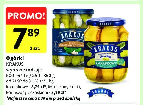 Ile kosztuje Og贸rki korniszony z czosnkiem Krakus maspex?