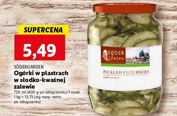 Ile kosztuje Og贸rki w plastrach w zalewie s艂odko-kwa艣nej Sodergarden?