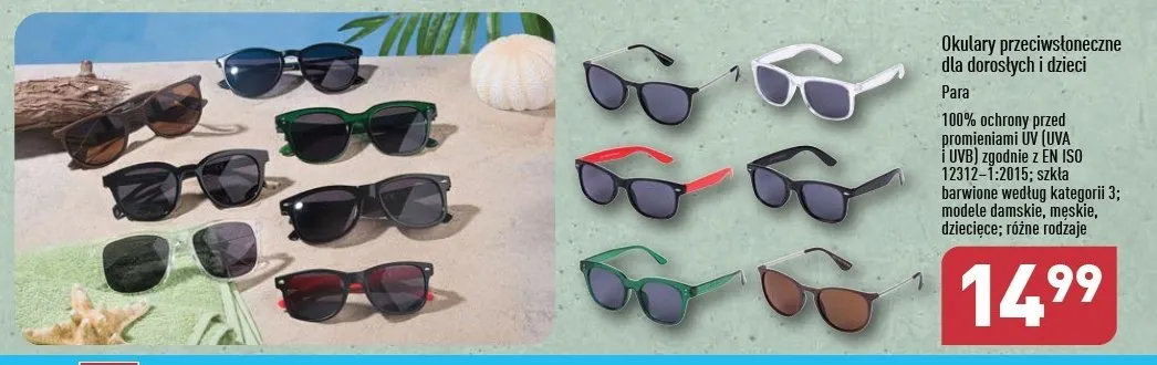 Cena produktu r贸偶ni si臋 w zale偶no艣ci od wybranego sklepu. Niestety nie posiadamy danych o aktualnych promocjach, jednak w艣r贸d archiwalnych ofert Okulary przeciws艂oneczne dla doros艂ych kosztuje od 14,99 z艂.