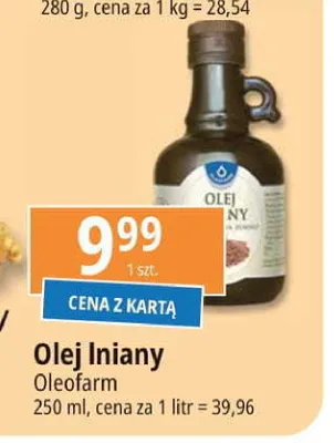 Cena produktu r贸偶ni si臋 w zale偶no艣ci od wybranego sklepu. Niestety nie posiadamy danych o aktualnych promocjach, jednak w艣r贸d archiwalnych ofert Olej lniany Oleofarm kosztuje od 8,99 z艂 do 10,99 z艂.