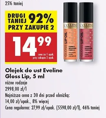 Zastanawiasz si臋, gdzie kupi膰 i ile kosztuje produkt Olejek do ust czerwony Eveline gloss lip oil? Regularnie sprawdzamy, czy jest promocja na ten produkt w Biedronka, Lidl, Kaufland, Auchan, Netto, Makro i innych sklepach. Aktualnie posiadamy 1 ofert臋 promocyjn膮 na ten produkt. Ceny zaczynaj膮 si臋 od 19,99z艂!
