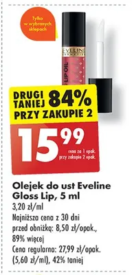 Zastanawiasz si臋, gdzie kupi膰 i ile kosztuje produkt Olejek do ust r贸偶owy Eveline gloss lip oil? Regularnie sprawdzamy, czy jest promocja na ten produkt w Biedronka, Lidl, Kaufland, Auchan, Netto, Makro i innych sklepach. Aktualnie posiadamy 1 ofert臋 promocyjn膮 na ten produkt. Ceny zaczynaj膮 si臋 od 19,99z艂!