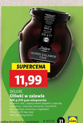 Zastanawiasz si臋, gdzie kupi膰 i ile kosztuje produkt Oliwki kalamon Deluxe? Regularnie sprawdzamy, czy jest promocja na ten produkt w Biedronka, Lidl, Kaufland, Auchan, Netto, Makro i innych sklepach. Aktualnie nie posiadamy ofert promocyjnych na ten produkt.