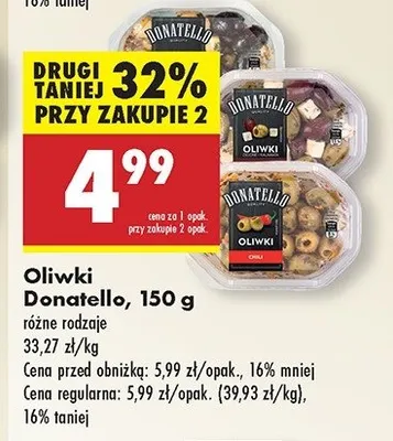 Cena produktu r贸偶ni si臋 w zale偶no艣ci od wybranego sklepu. Niestety nie posiadamy danych o aktualnych promocjach, jednak w艣r贸d archiwalnych ofert Oliwki rozmaryn i tymianek Donatello antipasti kosztuje od 4,49 z艂 do 4,99 z艂.