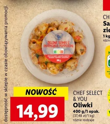 Przegl膮daj podobne oferty promocyjne do Oliwki zielone z papryczk膮 pepperoni Chef select & you!