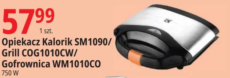 Cena produktu r贸偶ni si臋 w zale偶no艣ci od wybranego sklepu i obowi膮zuj膮cych promocji. Aktualnie w naszej bazie nie mamy informacji o cenach produktu Opiekacz grilowy sm1090w Kalorik.