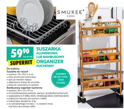 Cena produktu r贸偶ni si臋 w zale偶no艣ci od wybranego sklepu. Niestety nie posiadamy danych o aktualnych promocjach, jednak w艣r贸d archiwalnych ofert Organizer bambusowy kuchenny 36 x 15 x 74 cm Smukee home kosztuje od 59,9 z艂.