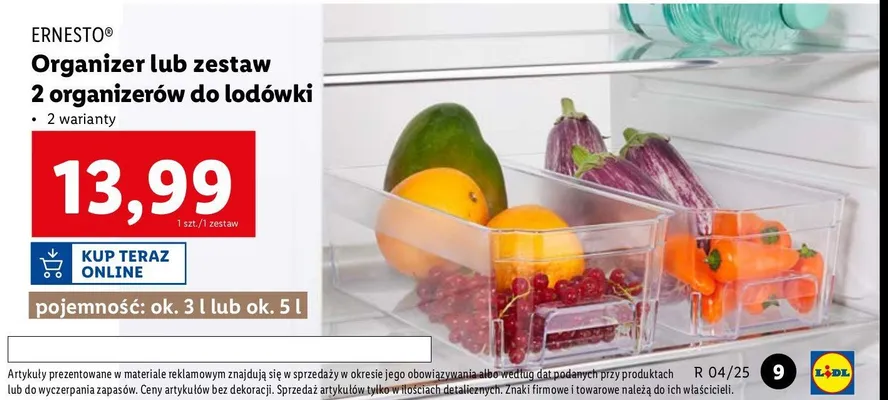 Zastanawiasz si臋, gdzie kupi膰 i ile kosztuje produkt Organizer do lod贸wki 31 x 14 x 9 cm 3 l Ernesto? Regularnie sprawdzamy, czy jest promocja na ten produkt w Biedronka, Lidl, Kaufland, Auchan, Netto, Makro i innych sklepach. Aktualnie nie posiadamy ofert promocyjnych na ten produkt.