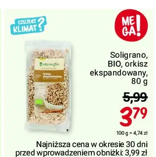 Cena produktu r贸偶ni si臋 w zale偶no艣ci od wybranego sklepu. Niestety nie posiadamy danych o aktualnych promocjach, jednak w艣r贸d archiwalnych ofert Orkisz ekspandowany bio Soligrano kosztuje od 2,99 z艂 do 3,99 z艂.