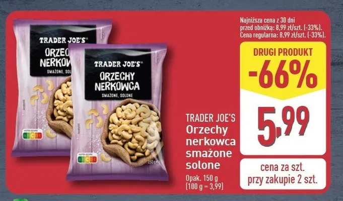 Gdzie mo偶na tanio kupi膰 produkt Orzechy nerkowca sma偶one solone Trader joe's?