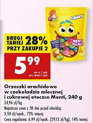 Gdzie mo偶na tanio kupi膰 produkt Orzeszki arachidowe w czekoladzie mlecznej Candi (biedronka)?