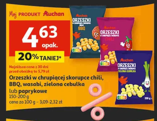 Gdzie mo偶na tanio kupi膰 produkt Orzeszki bbq Auchan r贸偶norodne (logo czerwone)?