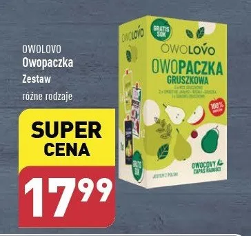 Cena produktu r贸偶ni si臋 w zale偶no艣ci od wybranego sklepu. Niestety nie posiadamy danych o aktualnych promocjach, jednak w艣r贸d archiwalnych ofert Owopaczka gruszkowa Owolovo kosztuje od 17,99 z艂.