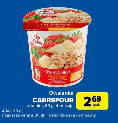 Ile kosztuje Owsianka bia艂a czekolada i truskawka Carrefour extra?