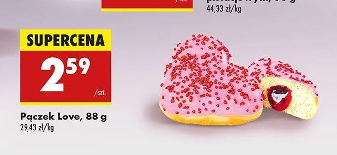 Cena produktu r贸偶ni si臋 w zale偶no艣ci od wybranego sklepu. Niestety nie posiadamy danych o aktualnych promocjach, jednak w艣r贸d archiwalnych ofert P膮czek love kosztuje od 2,16 z艂 do 3,69 z艂.
