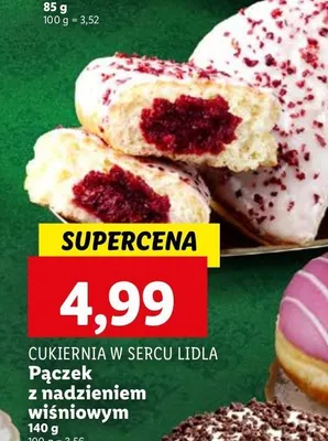 Cena produktu r贸偶ni si臋 w zale偶no艣ci od wybranego sklepu. Niestety nie posiadamy danych o aktualnych promocjach, jednak w艣r贸d archiwalnych ofert P膮czek z nadzieniem wi艣niowym kosztuje od 3,99 z艂 do 4,99 z艂.