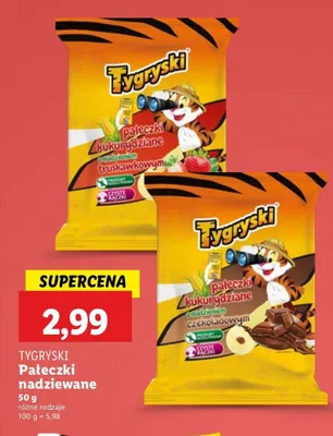 Cena produktu r贸偶ni si臋 w zale偶no艣ci od wybranego sklepu. Niestety nie posiadamy danych o aktualnych promocjach, jednak w艣r贸d archiwalnych ofert Pa艂eczki truskawkowe Tygryski kosztuje od 2,99 z艂.